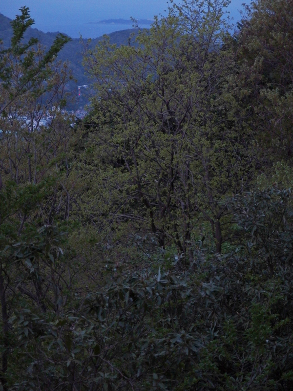 日が暮れた伊豆の山はひっそりしていて、海と暗い空が溶け合っていました。