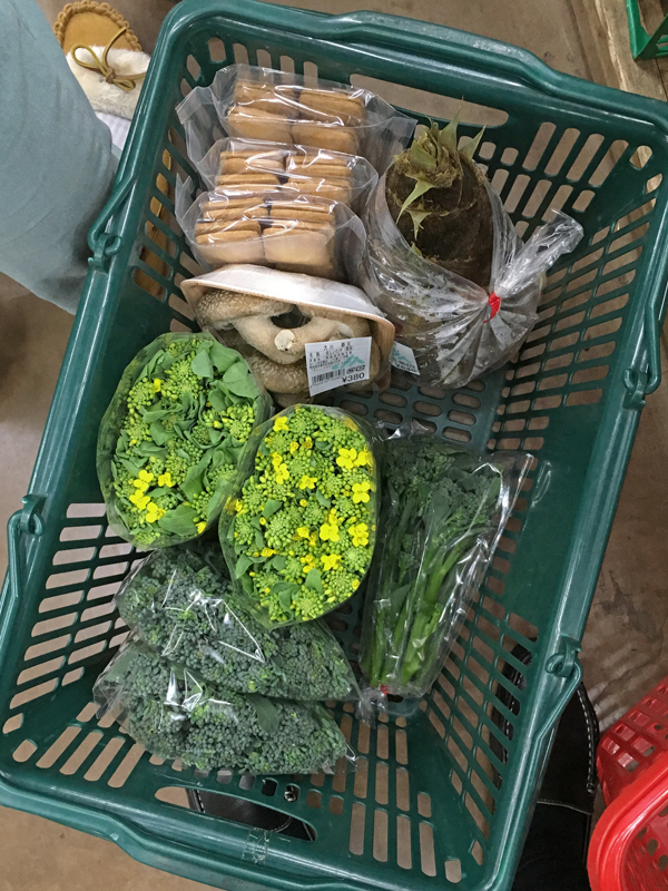 素晴らしい生の原木椎茸、柔らかそうな菜花、元気なスティックセニョールも買えました。レジが長蛇の列だったので、並びながら周りを見ると・・・