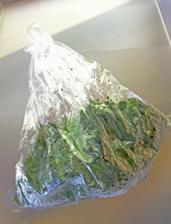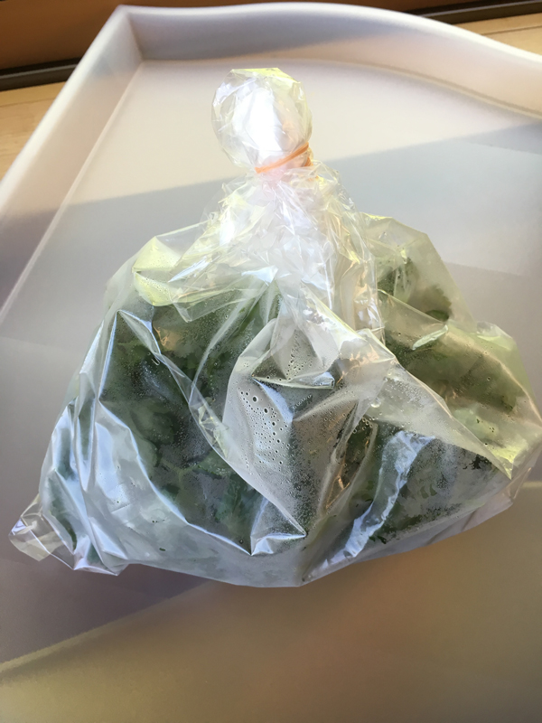 袋の外から手で葉をもんで細かくします