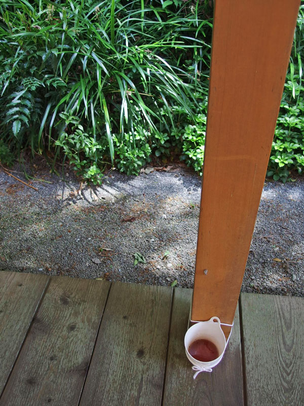 去年スズメバチに刺された後行ったハチ除け対策、竹酢液を入れた容器、これを今年もテラスの周りに10個以上置きました。