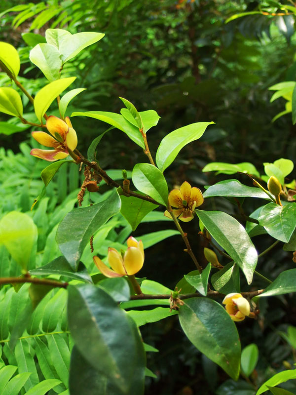肉厚で不思議な雰囲気の「カラタネ・オガタマ」の花