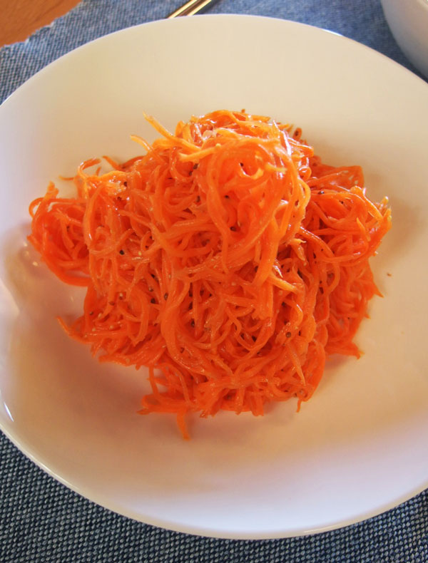 人参のサラダ、暑かったのでレモン汁は多め、粒マスタードでアクセントを。