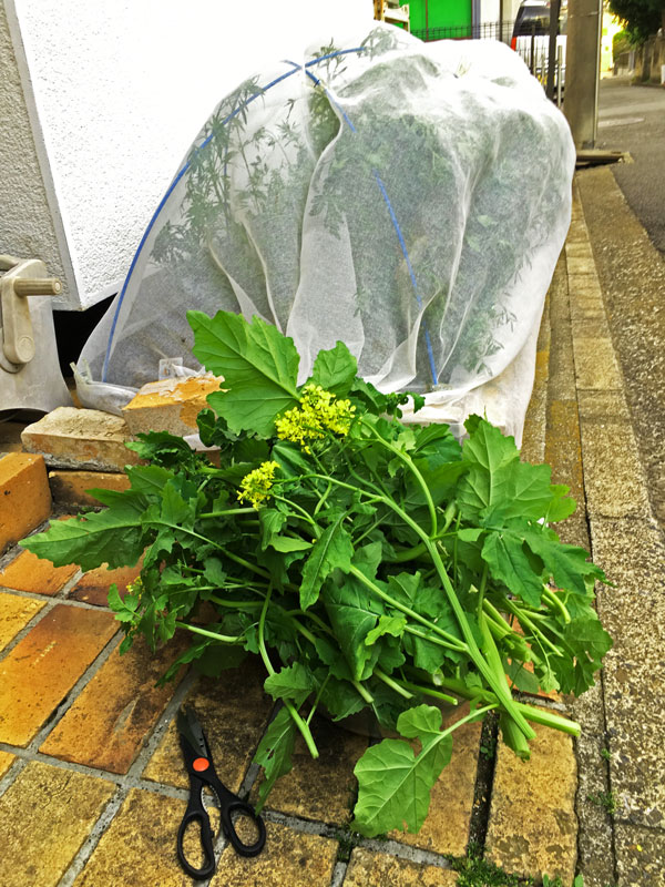 5月4日、横浜の家の玄関わきの小さな畑の収穫です。