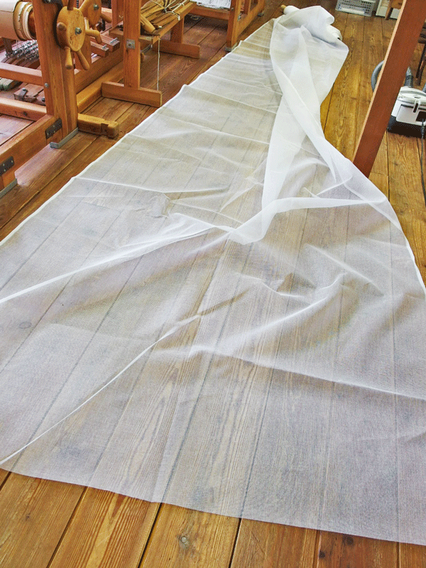 幅180センチ、長さ14メートルの「紗」を広げて、横浜の畑用にカットしているところです。