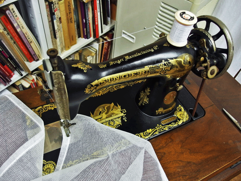 このミシンは、私が生まれる前に亡くなった父の母のもので、多分大正時代か昭和初期のものです。我が家にはその後買った新しいミシンが2台あったのですが、この古いミシンの縫い目の美しさに勝るものはなく、結局これが生き残りました。