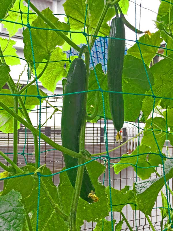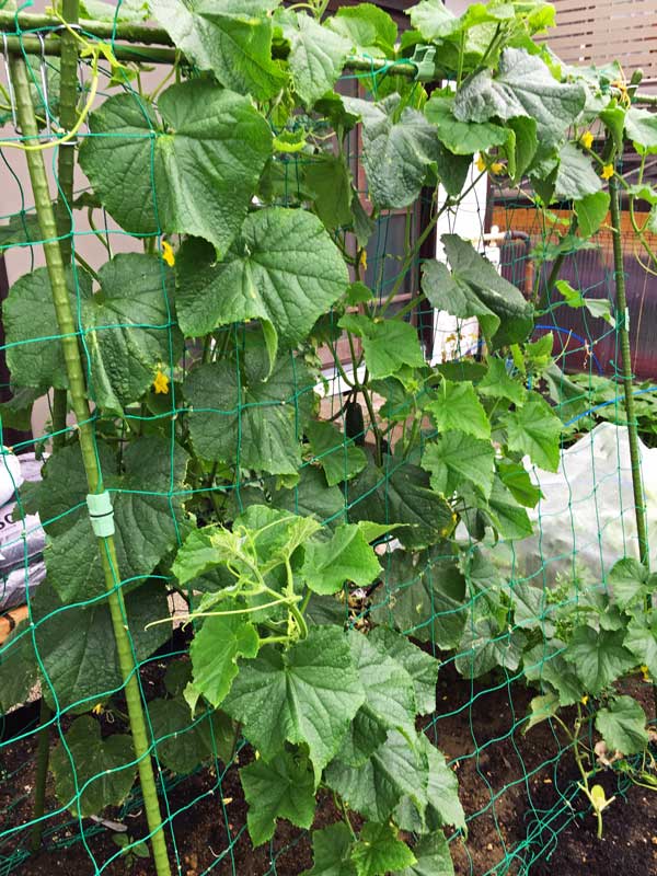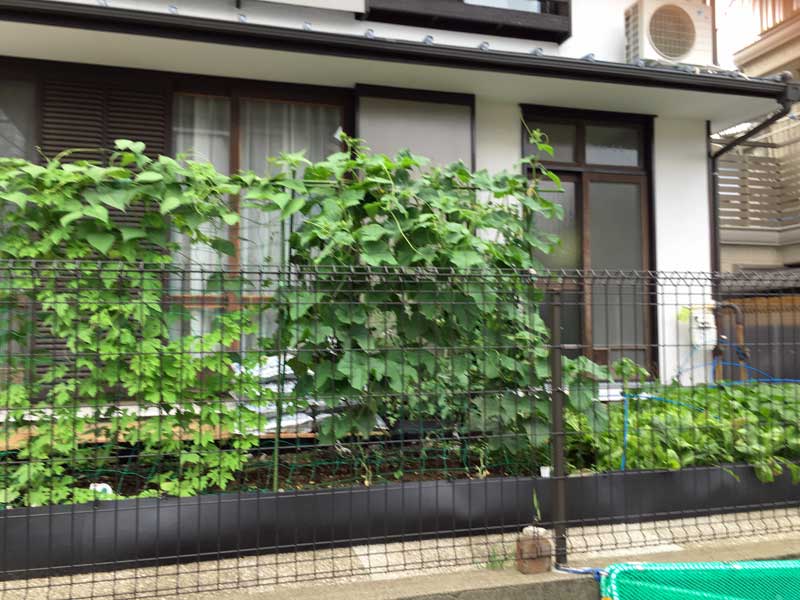 ネットには、インゲン、胡瓜、ゴーヤを這わせています。