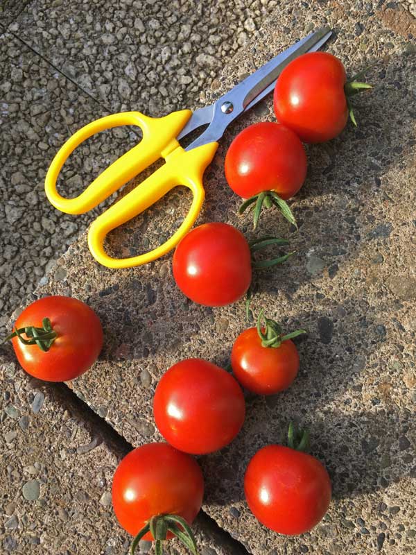 この日にいらっしゃるお客様のために、赤くなったトマトを採りました。