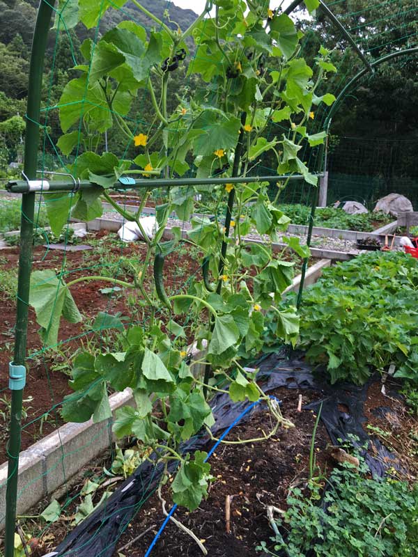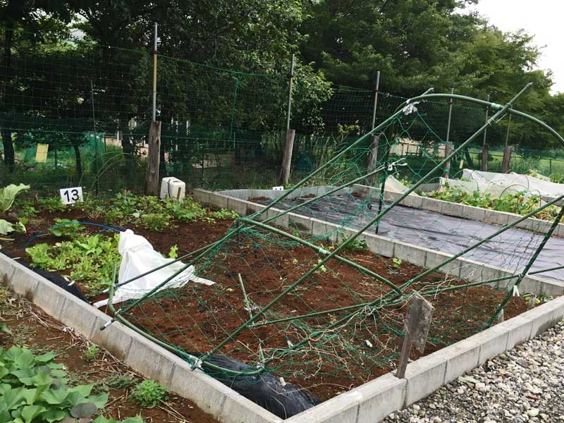貸農園の周りを囲っている鹿よけの柵の柱が傾き、我が畑の胡瓜のネットも斜めになっています。