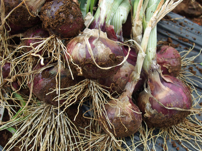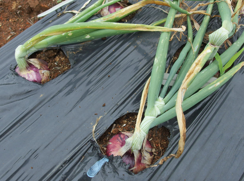 赤玉ねぎは生でも美味しく便利なので、白玉ねぎの倍植えてました