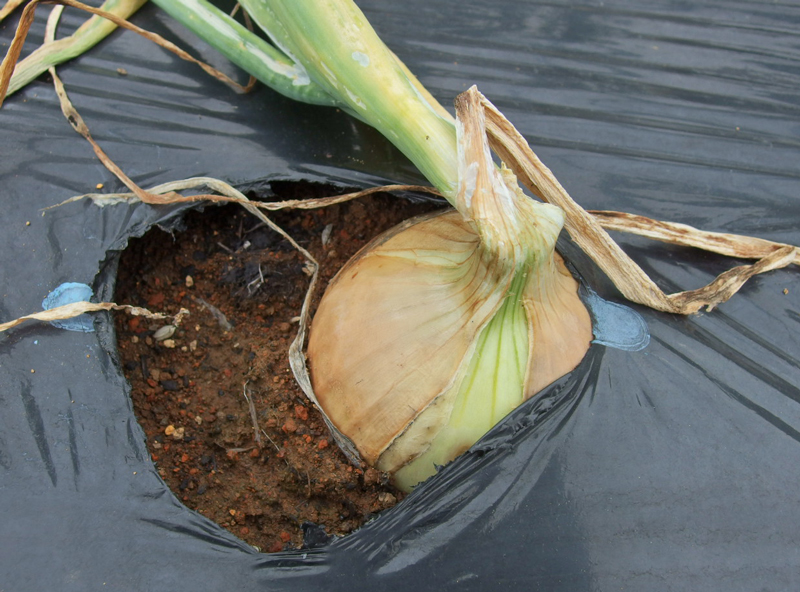 玉ねぎは茎が太ったものなので、地表に半分出ています