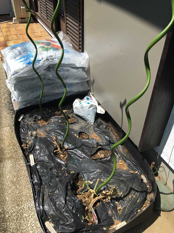 切り倒した後の、トマトが植わっていた畑・・・あの可愛らしい実をつけていたシンディースイートなのに、あっけなく終わってしまいました。この場所は軒下で雨があたらないのでトマトが育てやすいと思ったのですが、水やりの心配りが至らなかったのです。