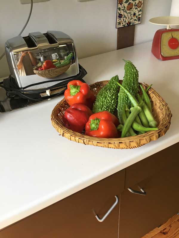 パプリカ、オクラ、ゴーヤ、全部横浜の家の庭で採れたものです☆