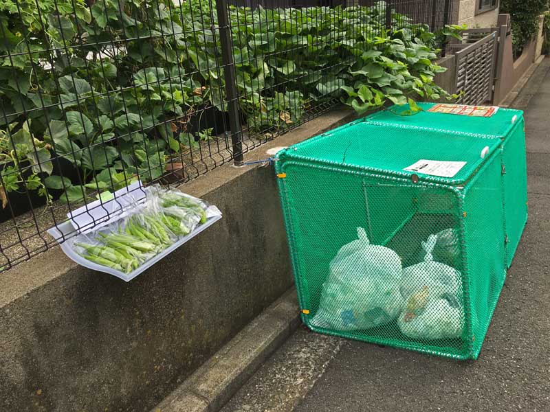 この日はごみ収集日、ご近所さんにおすそ分けの日です。