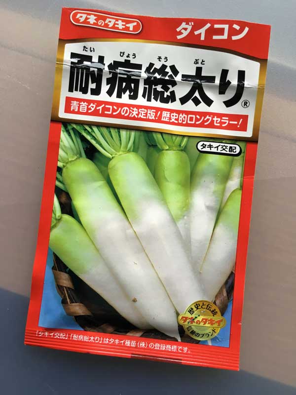 お気に入りの青首大根「耐病総太り」。初めてこの名前を見た時、人間だったら凄いと想像してしまい、半信半疑だったのですが、本当に作り易くて使いやすい品種なのが分かりました。