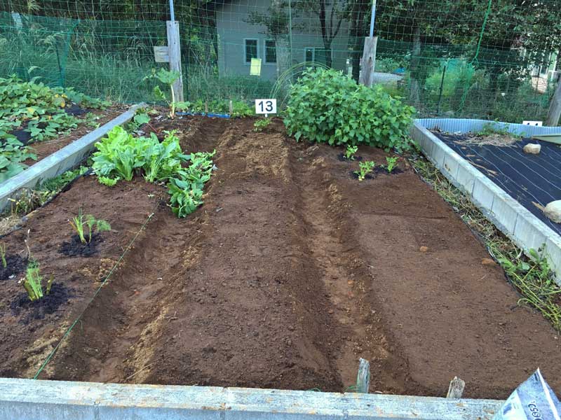 奥に日のあたらないこちらの畑は、日陰でも大丈夫なルバーブを増やし、その手前は2~3年植えっぱなしで平気なフローレンス・フェンネルに、空いた部分にセロリ、パセリ、サラダミックスを植える事に決めました。