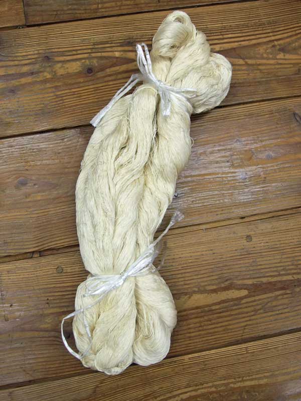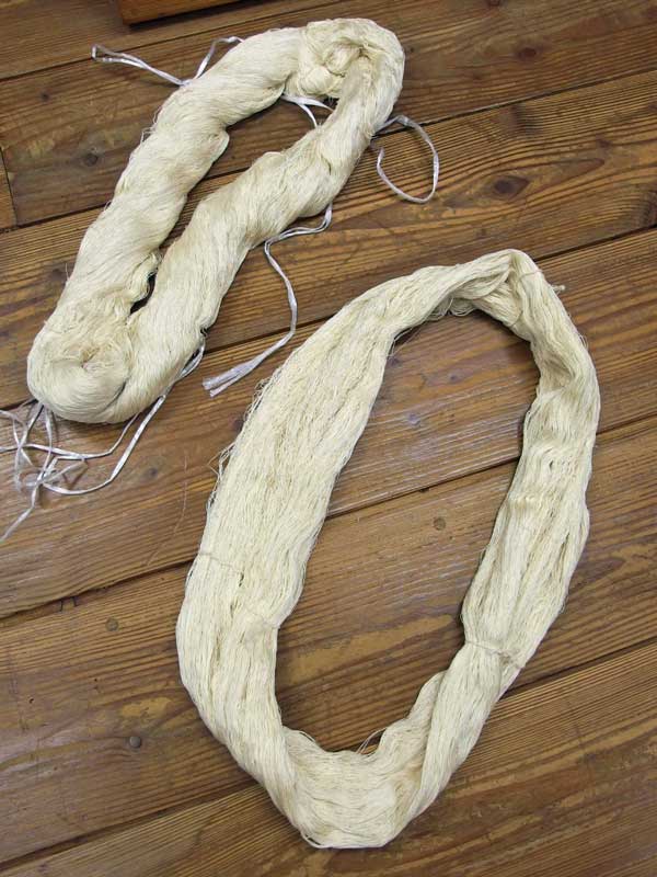 20年以上に前に織った棺衣の生地と同じ糸を倉庫から探し出しました。
