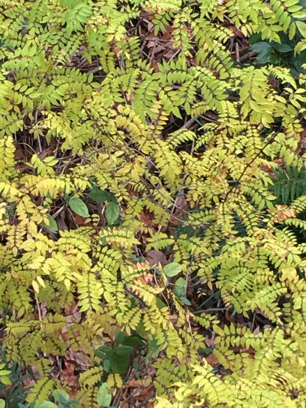 勝手口から続く石段の下にある山椒の木が、金色に紅葉しているのに気づきました。