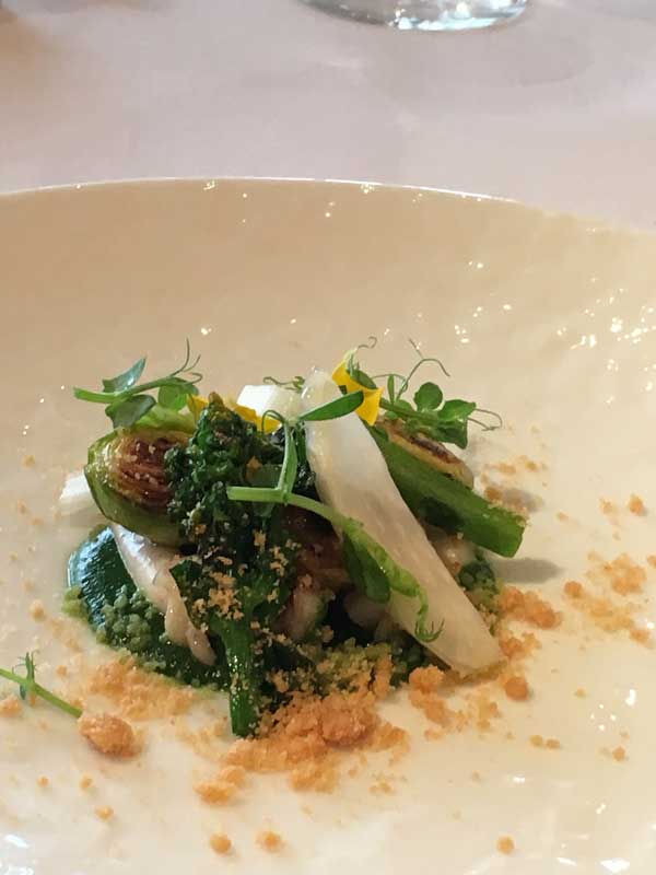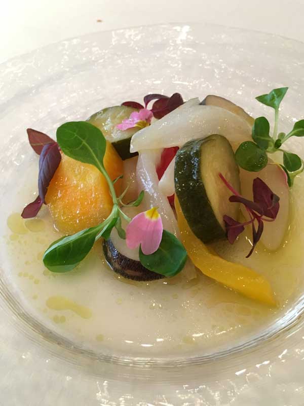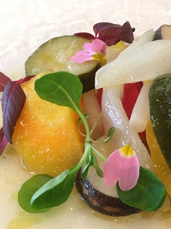 お花畑のような美しさ、野菜の蒸し加減も味も素晴らしい一皿でした
