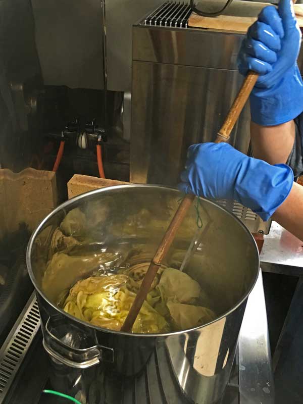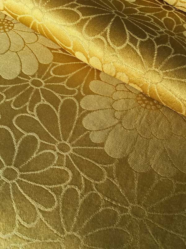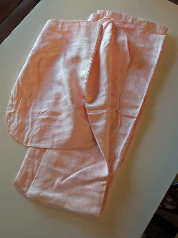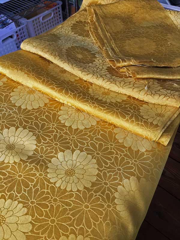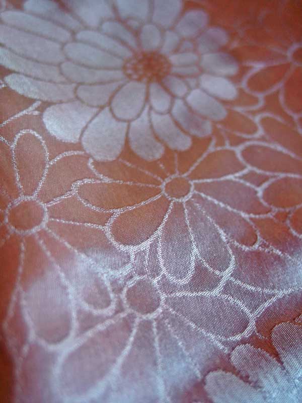 ピンクの菊の花模様の地模様織り出された緞子(ダマスク織り)。 これを翌朝に間に合うよう一生懸命解いていました。