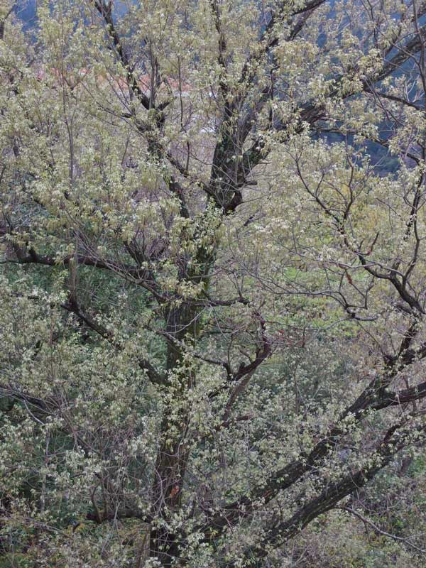 木々の芽は雨で濡れて輝いています。