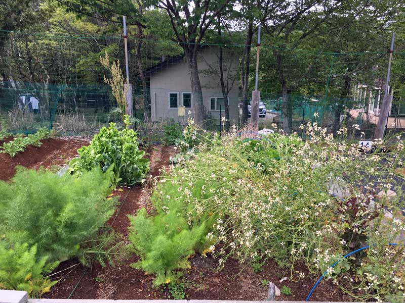 この伊豆の山の貸農園はあまり条件がよくありません。標高が高いので気温が低い、側に大きな木があって日陰になる場所がある、柵があるけれどイタチ類やカラスに実物は狙われる。