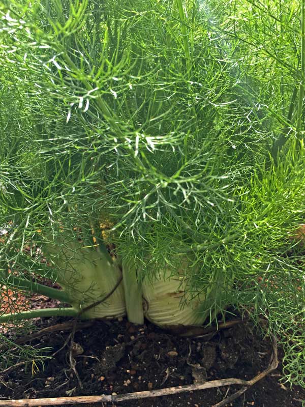 昨秋種を播いたフローレンス・フェンネルのふさふさの葉は春光に輝いていました