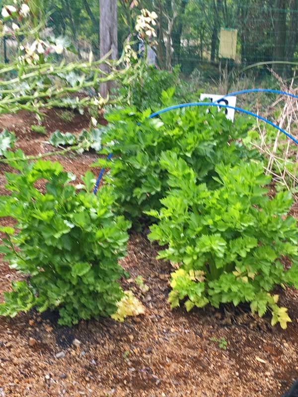 冬の間じっとしていたセロリは葉を上に向け、急に大きくなり