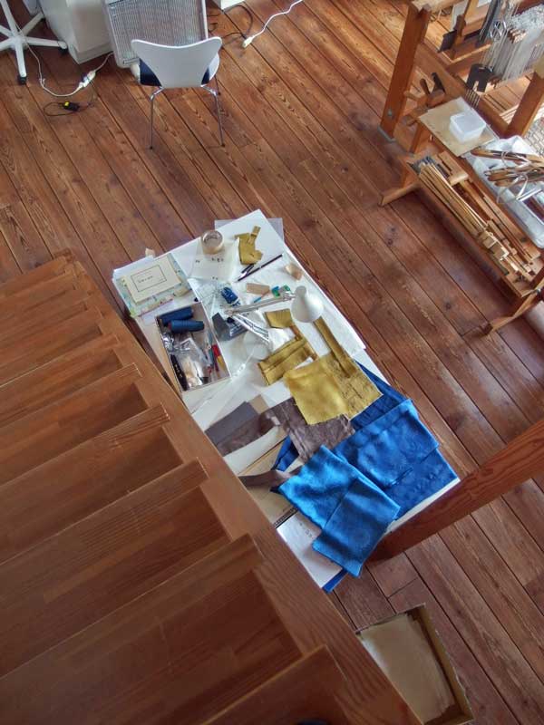 階段を上り下りする時、アトリエのテーブルが目に入ります