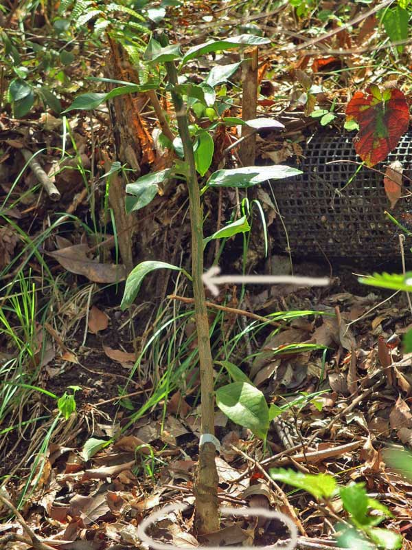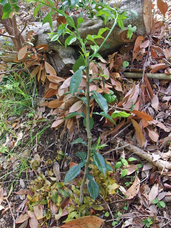 レモンは一番日当たりがよい急な崖に植えました。寒さに比較的強い「リスボン」と言う種類です。標高260メートルの北斜面で育つでしょうか?