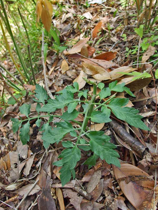 先日横浜で買って持って来た、大好きなトマト「シンディー・スイート」、協生農法を取り入れて家の周りの崖に植えたのですが翌朝は・・・