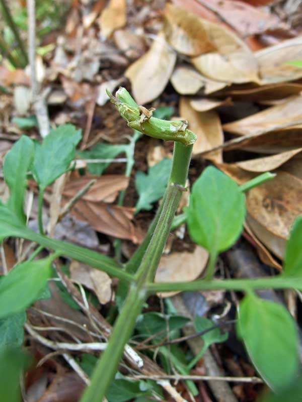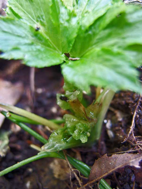 明日葉が出るくらいの明日葉なので、引き抜かれて食べられた苗を拾って植え直したら、また芽が出てきました。
