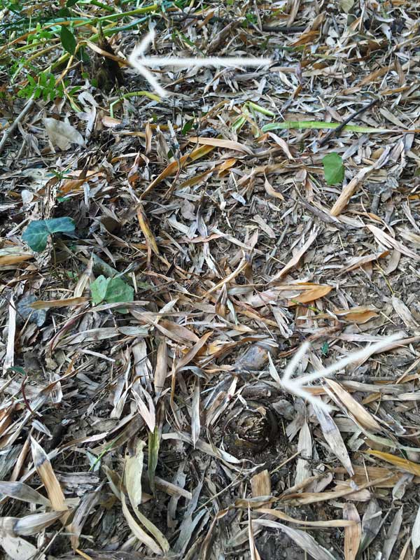 ここは三島市にあるお寺の裏庭。 2月から私はこのお寺に月に1度習い事に来ています。お昼休みに「今年は何処からも筍を頂かない」の話になりました。「筍はお湯を沸かしてから採りに行けば、アクもなく茹でるのに糠もいりません」と住職さん。食後、習い事のメンバーで裏庭に筍を見に行こうとなりました。