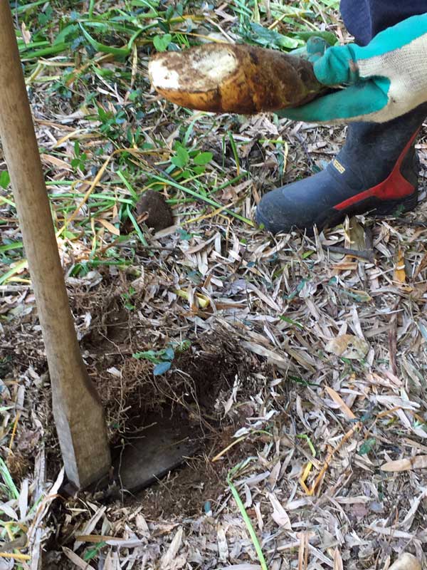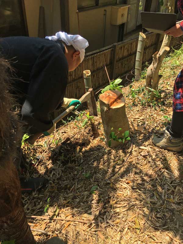 私達があちこち散策している間に、弟子の方は休まず筍を掘りを続けていらっしゃいます。