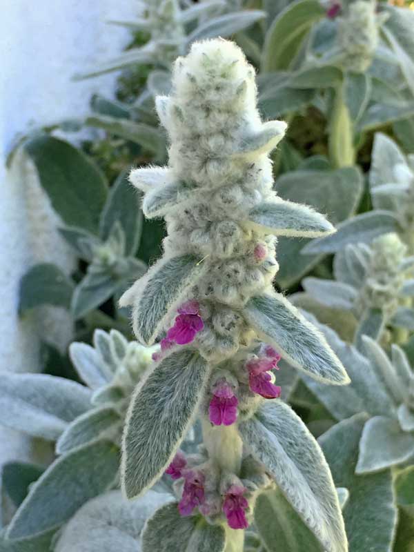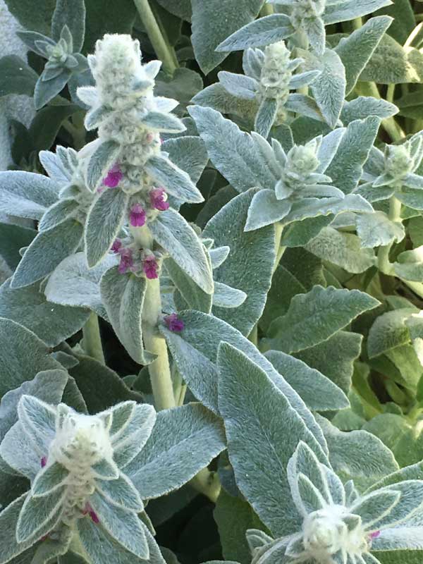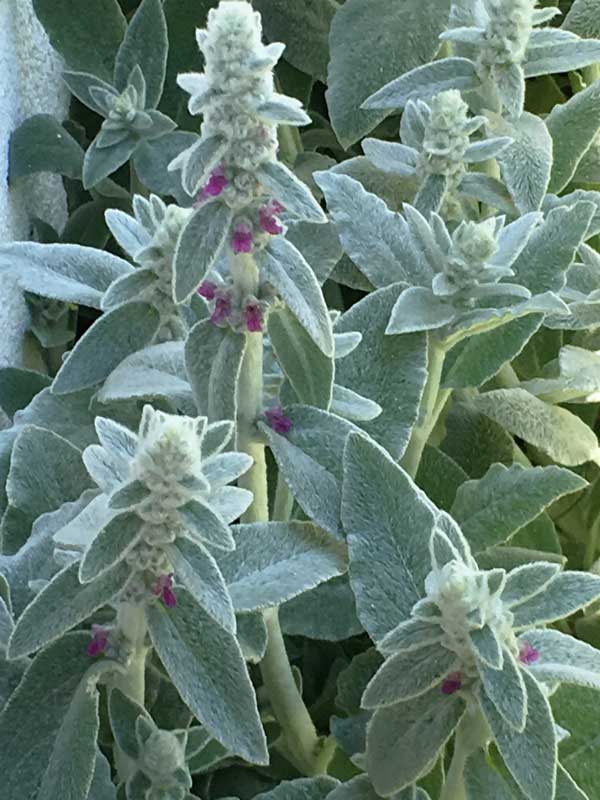 イタリアンパセリ、ラムズ・イアー、その下の葉はマジョラム