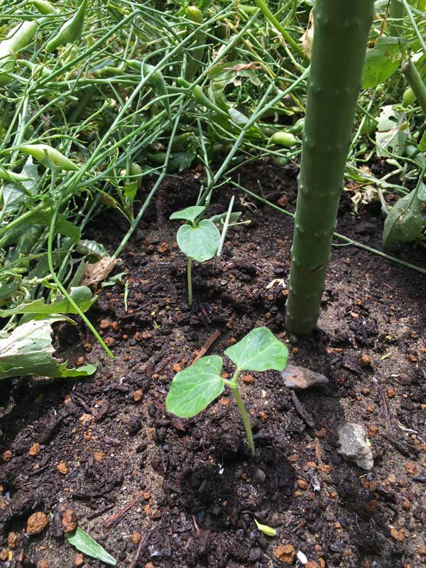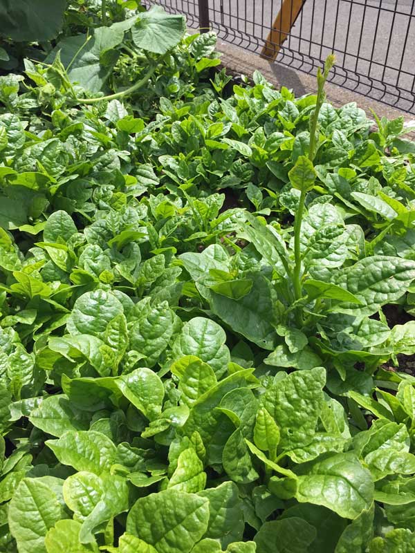 昨年夏大活躍したツルムラサキ、今年は種を播かなくても、こぼれ種が一斉に発芽してこんな状態です。