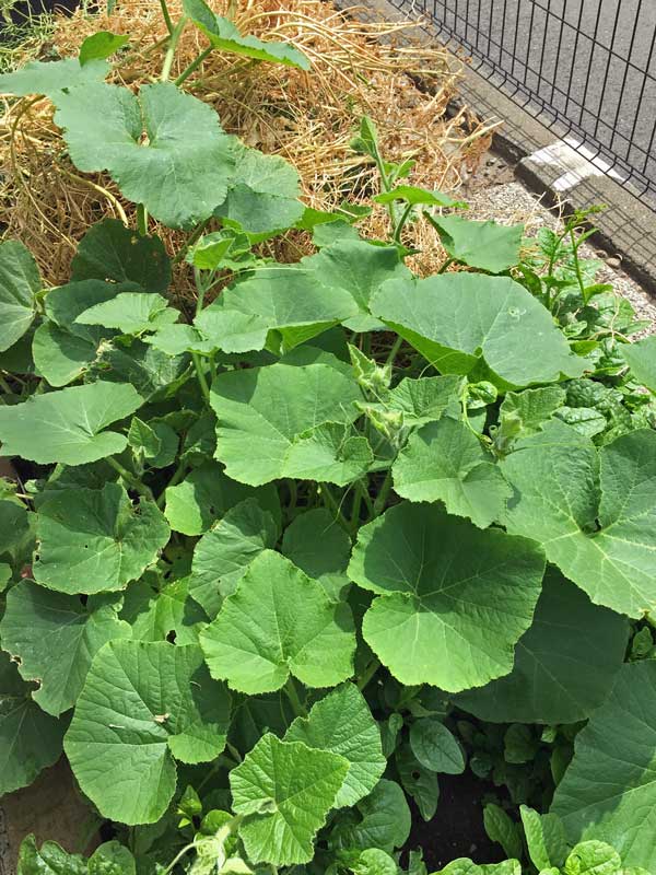 生ごみ捨て場にしていた場所に生えて来た元気なウリ科の植物、多分南瓜だと思います。どのような南瓜がなるのか楽しみです。