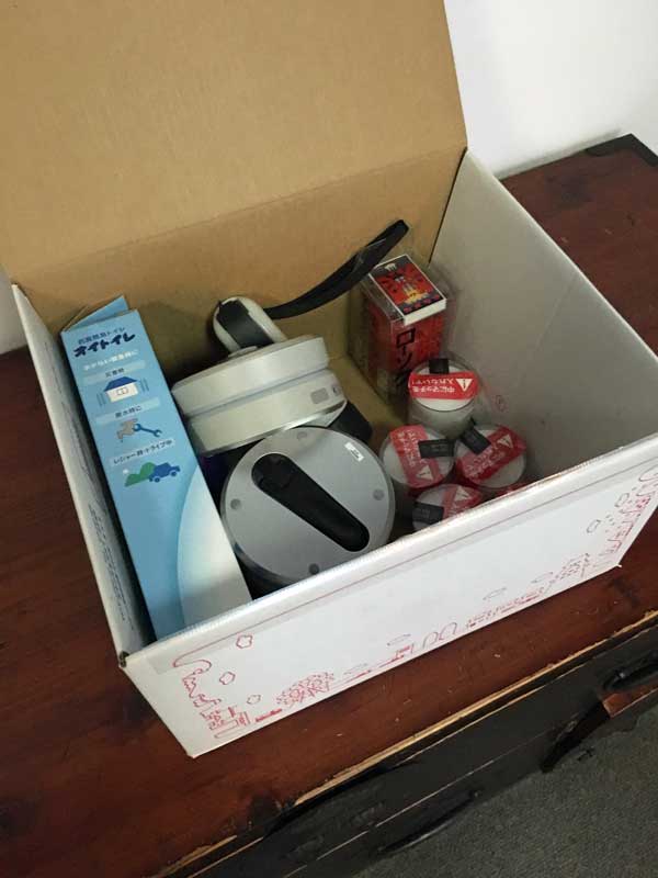 ランタンなど非常時の必要品は一つの箱にまとめて目立つ所に置き・・・