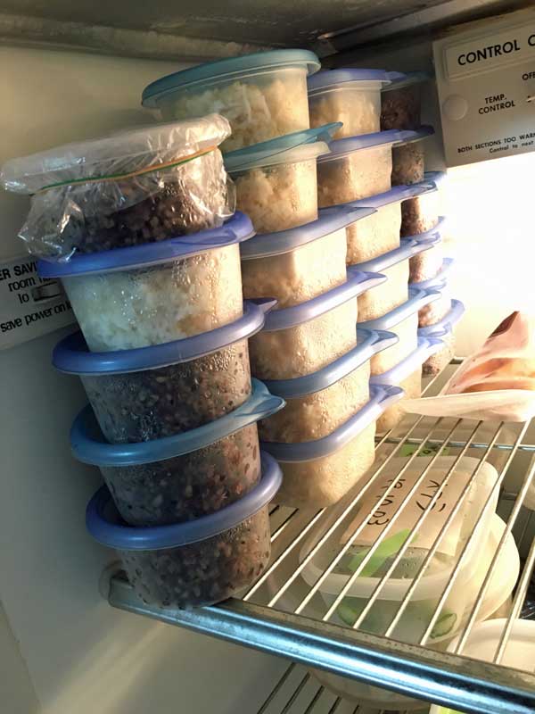 昨夜のうちに玄米ご飯と雑穀ご飯を炊いたので、何日か分のご飯もストック済み。停電になっても冷凍庫の保冷剤を冷蔵庫に移せば4日くらいは大丈夫なのは経験済みです。電子レンジが使えなくても、鍋に湯を少量沸かしてその中に容器に入ったご飯を入れ、蓋をしてから火を止め、そのまましばらく置けば、食べられるくらいにご飯は温まります。