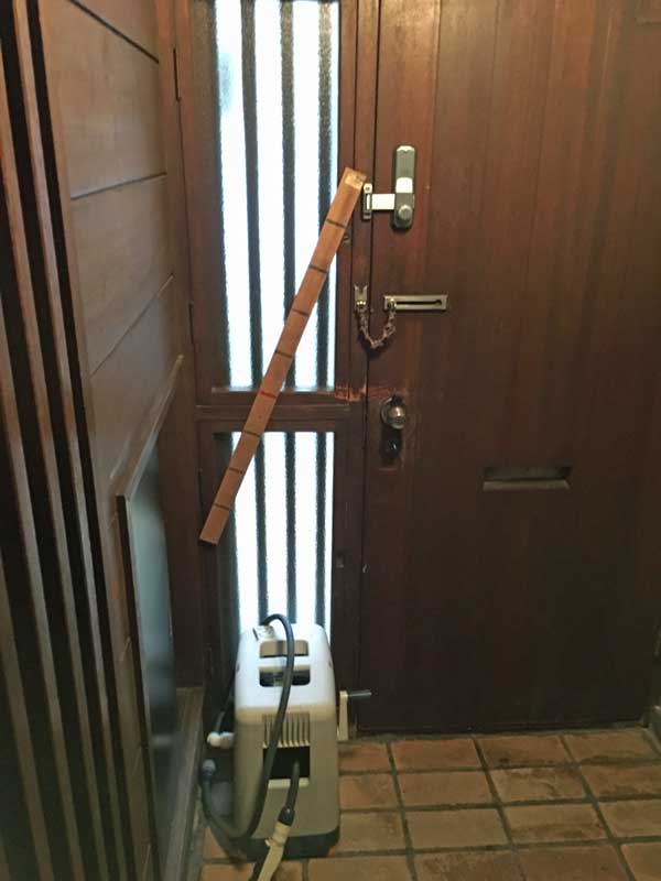 玄関の小窓の鍵がガタついていたのを発見したので、板を打ち付けました。
