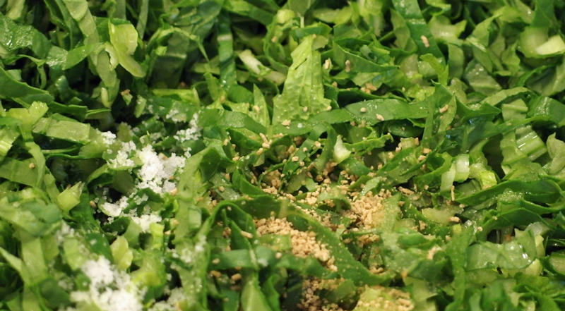 何だか葉っぱに味がなかったので、塩の他に椎茸のダシの素もいれました