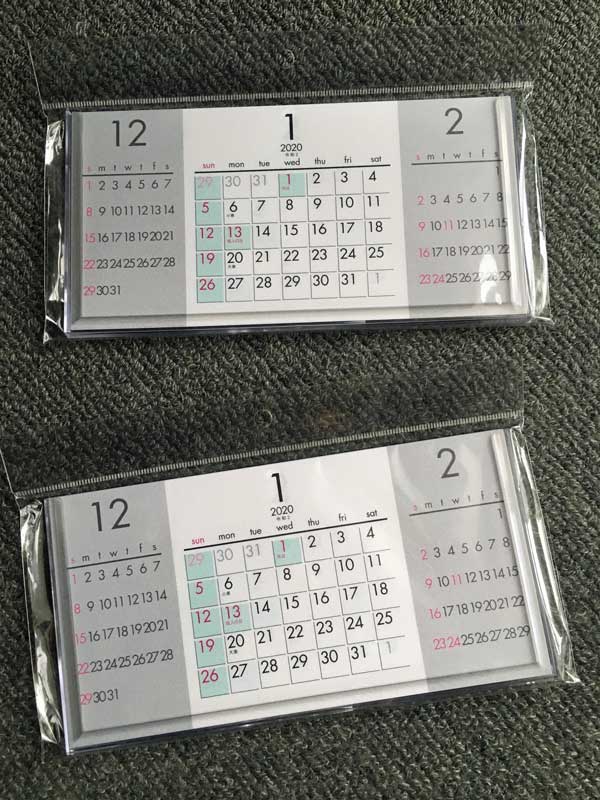 このカレンダーで確認しながら、2020年を一歩一歩しっかり歩んで行こうと思います。