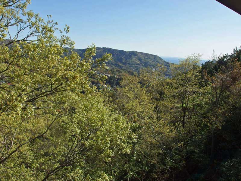 山の向こうの海の向こうに三浦半島が見えます