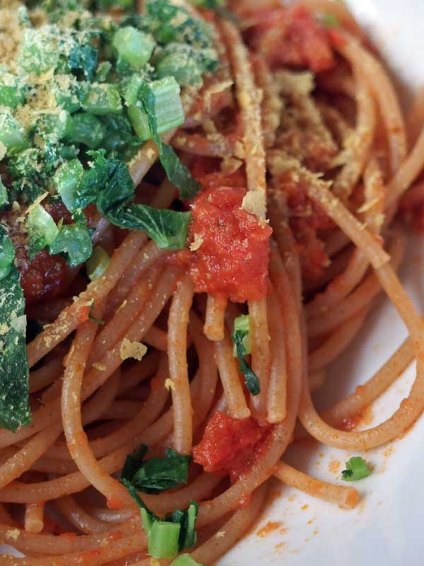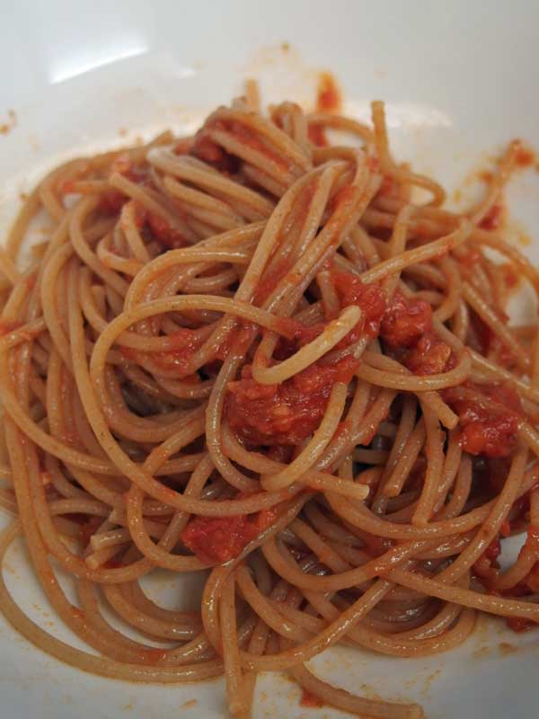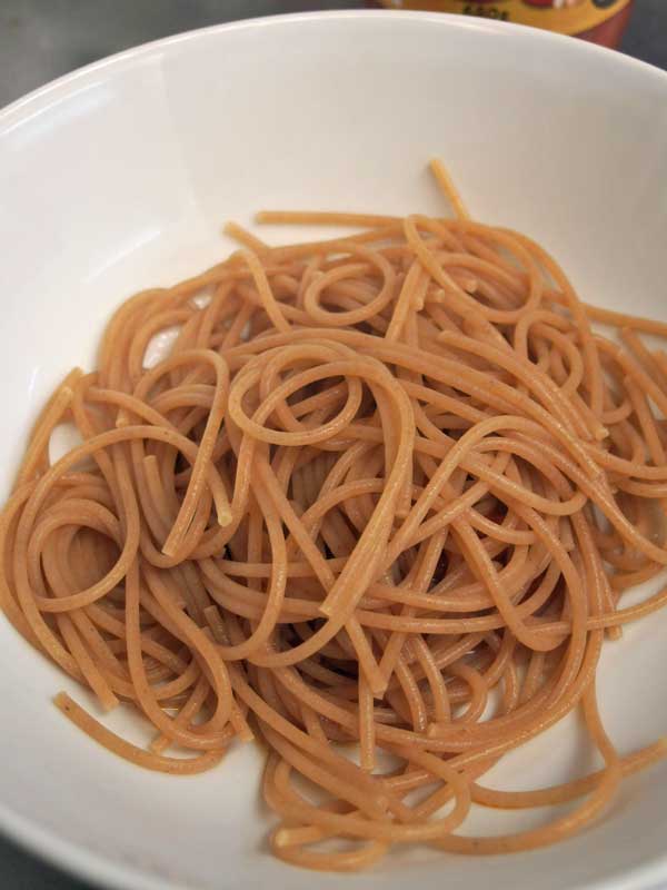 病気をして体重が減ってしまったので1日3食頑張って食べているのですが、日に3回食事の用意をするのは大変。この大豆ボローニャソースは大豆と野菜が3種類も入っているし、全粒粉のパスタなら玄米ご飯のようなもの。このソースとパスタだけでも一食になるかもしれないと、さっそくソースとパスタを試してみました。