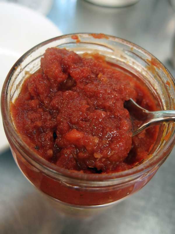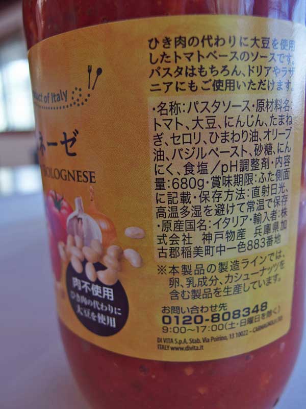 材料を確かめると・・・ トマト、大豆、人参、玉ねぎ、セロリ、ヒマワリ油、バージルペースト、砂糖、ニンニク、食塩。添加物はPH調整剤だけです。 680gの大瓶が¥298! 大丈夫かな?と不安もありましたが3瓶買ってしまいました。