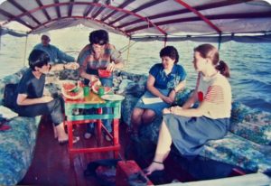 ツルムラサキを摘むMさん・2018年夏