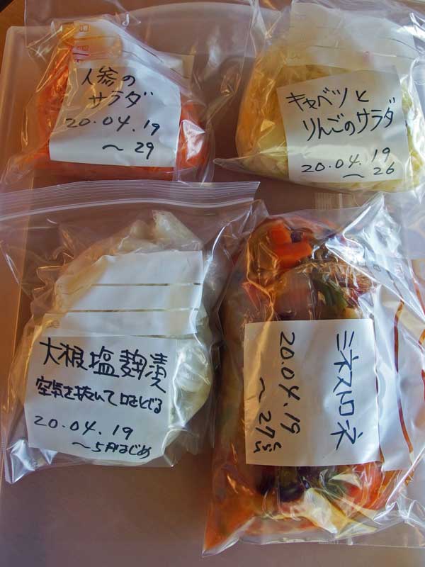 夕方までに料理を作って冷まして(病気して未だ体力が戻っていない今は2日に分けて料理したり)、夕方ギリギリにヤマト運輸の配送センターへ出しに行きます。受付で「新型コロナで少し遅れるかもしれません」と言われるのですが、翌日の午前中には必ず届きます。