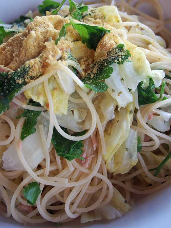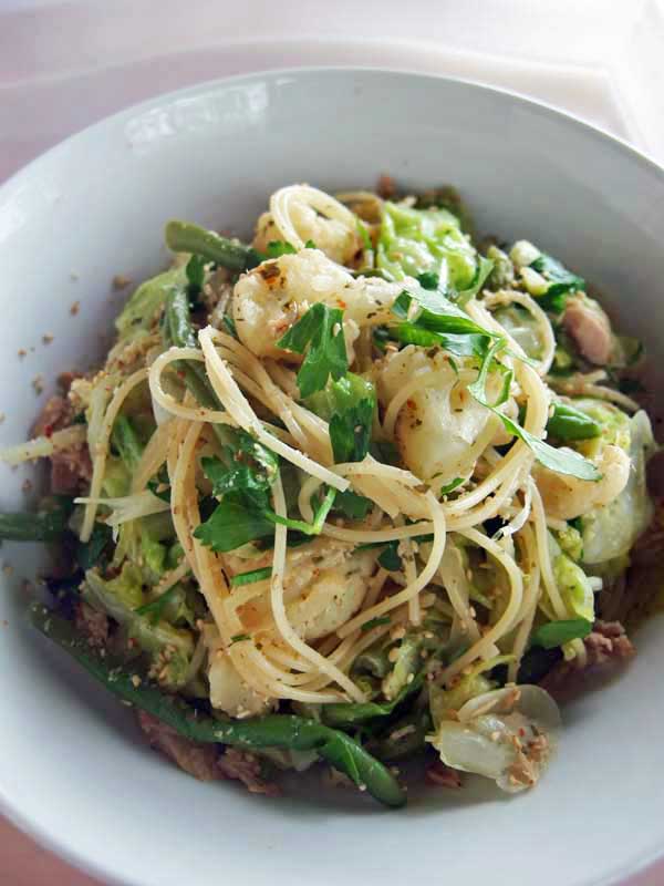 トマト味でないと、野菜の味と香りがより際立って飽きないパスタです。