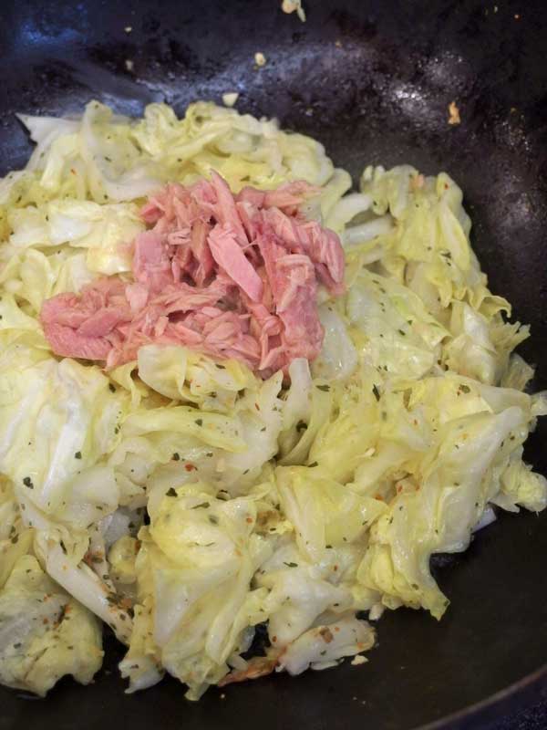 ツナを汁ごと加え