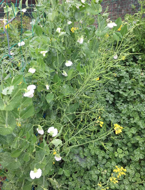 スナップエンドウの畔道にはクローバーが一杯!
