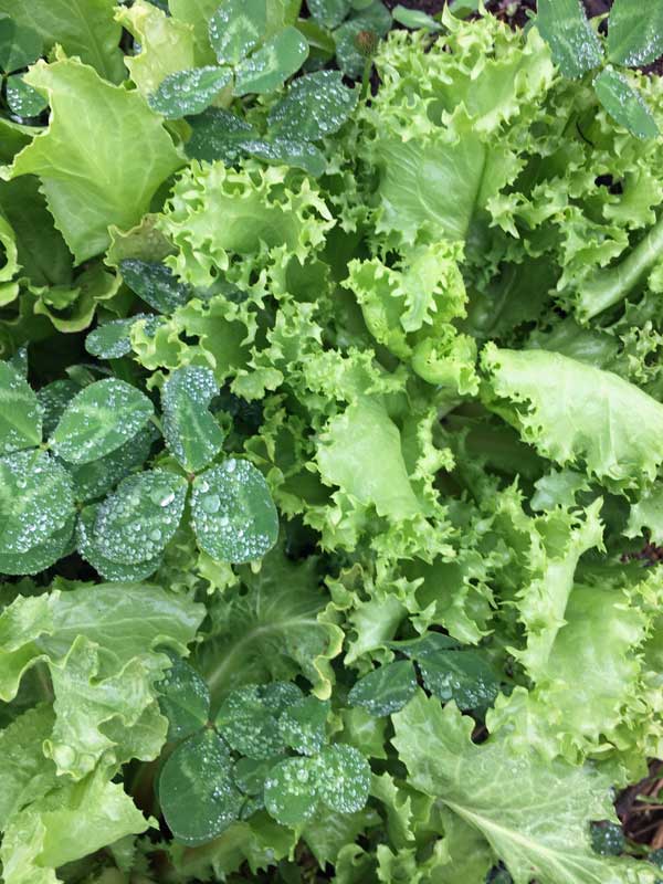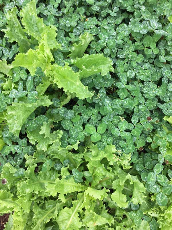 借りている畑のもう一面は、畝にクローバーが拡がっていました。その中にレタスが☆